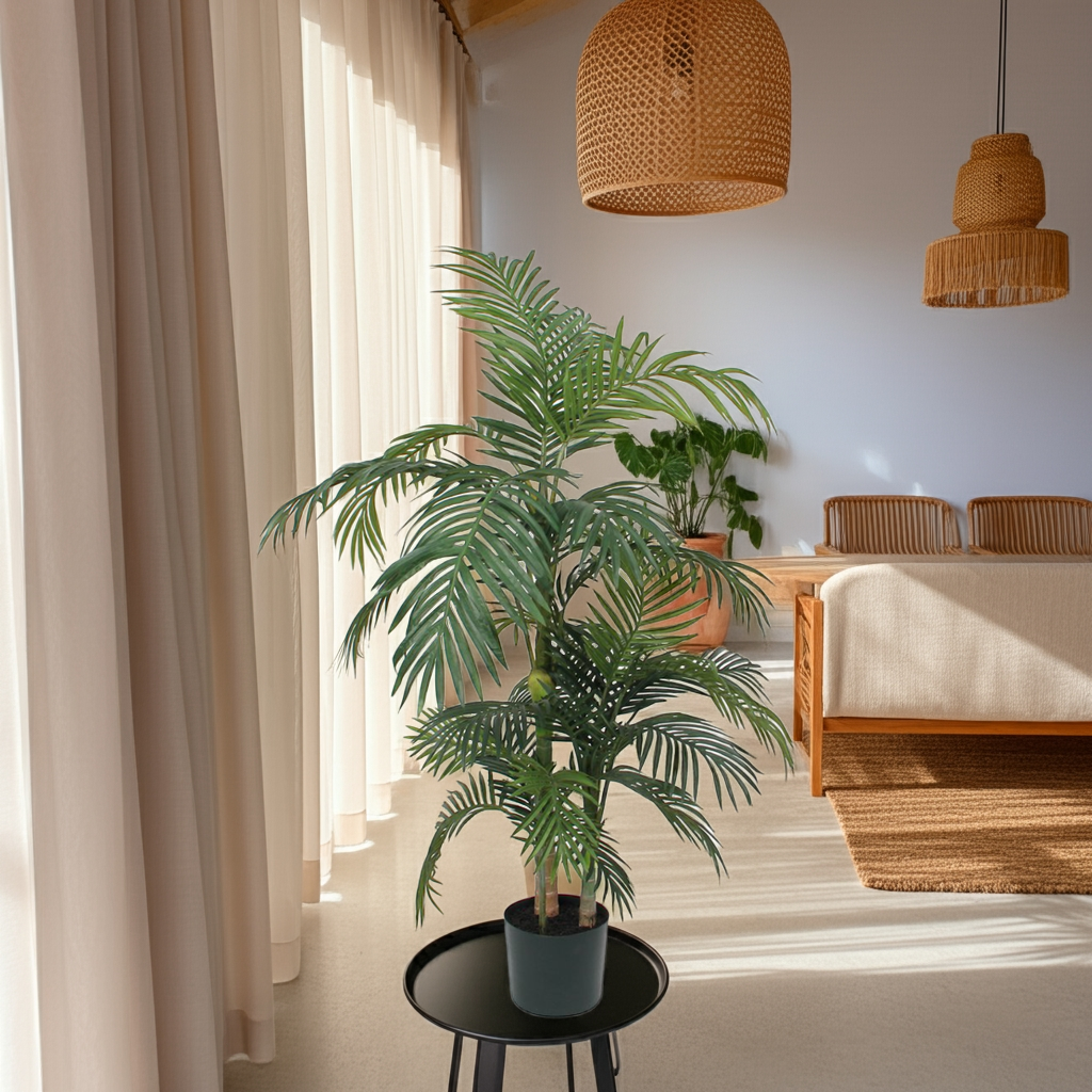 Combineer de Areca palm met andere kunstplanten en -bloemen uit de collectie voor een weelderige groene uitstraling. Let op: deze plant is alleen geschikt voor binnen.