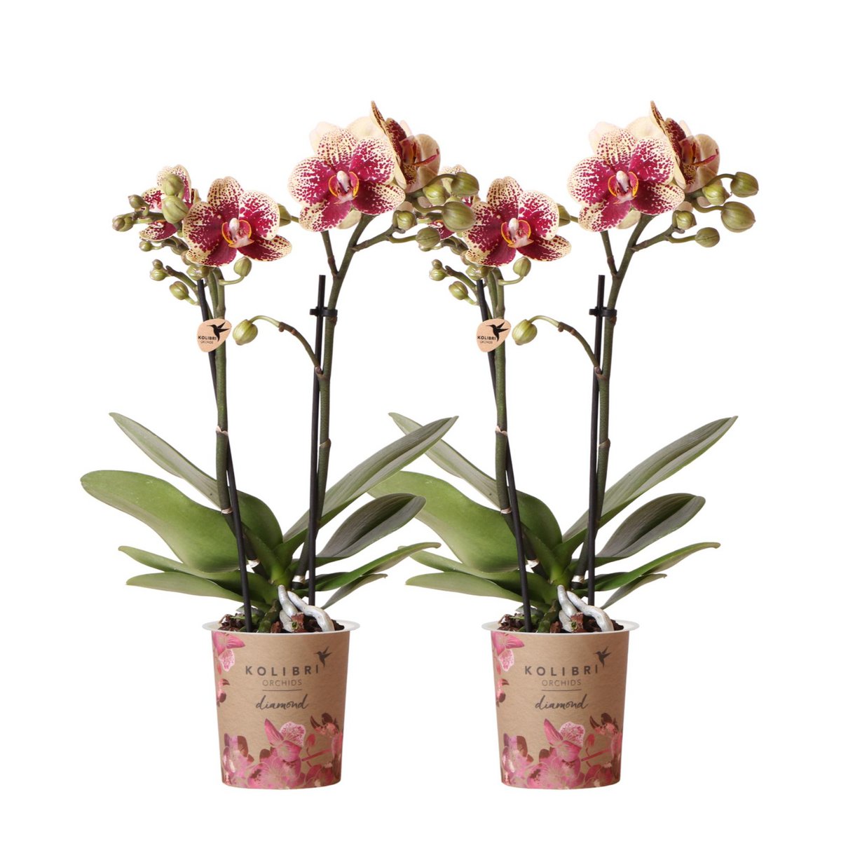 Bundel van 2 Geel-Rode Phalaenopsis Orchideeën – Ø9 cm | Bloeiende kamerplant, vers van de kweker
