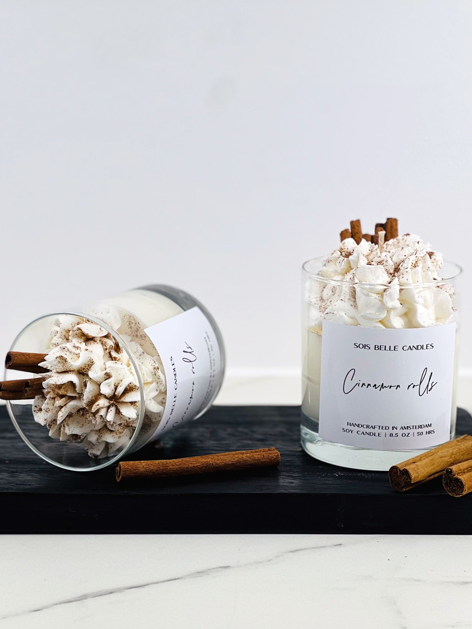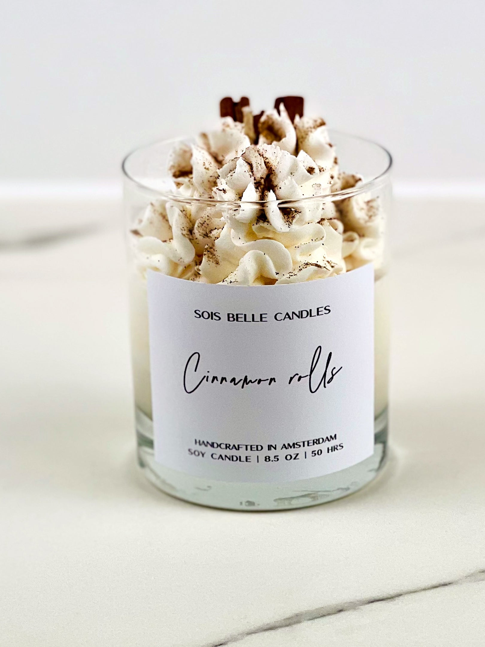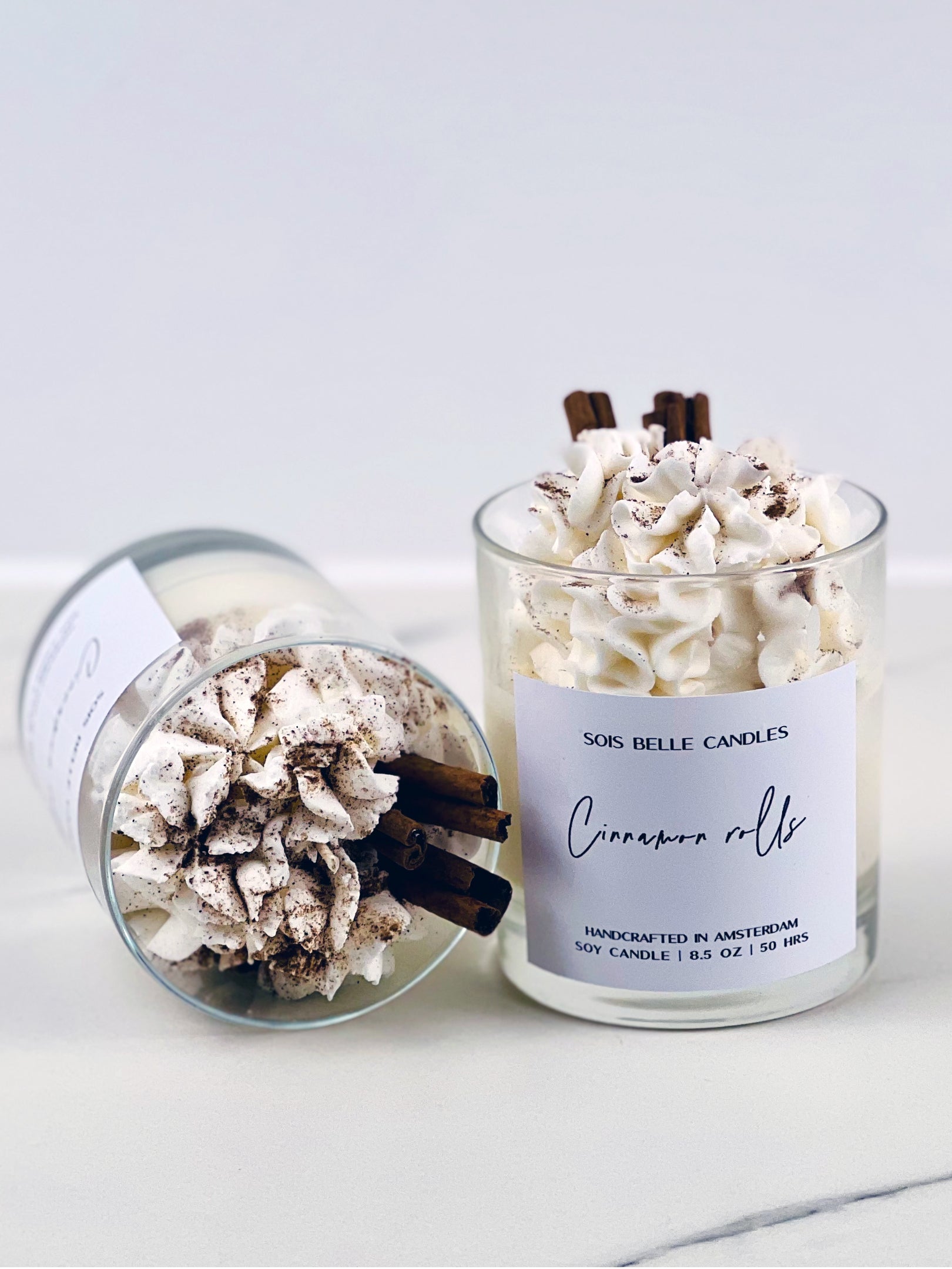 De 'Cinnemon Rolls' geurkaars heeft een echte warme zoete geur en ziet er ook nog eens fantastisch uit. De unieke kaars is handgemaakt waardoor elk product anders is.