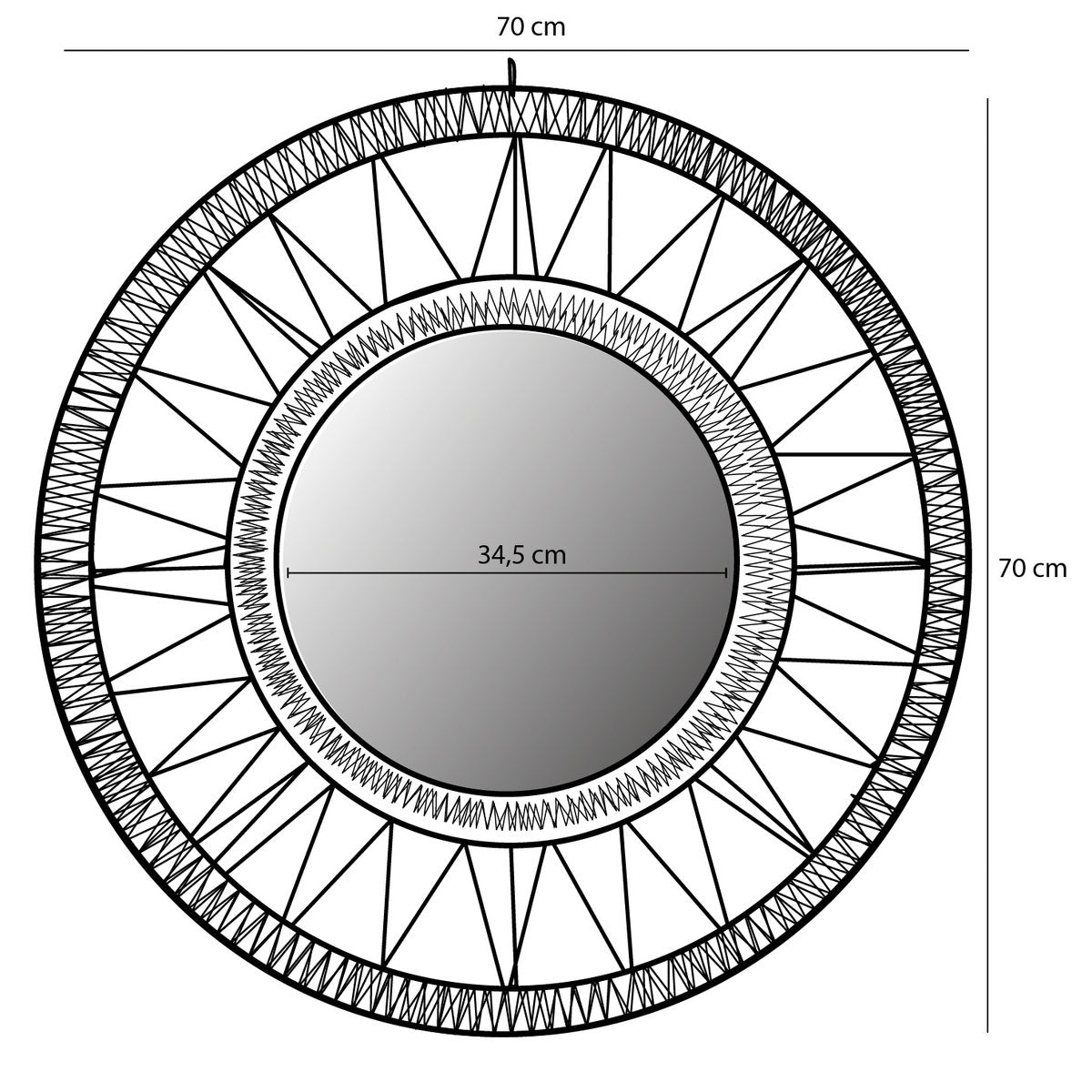 Geef je interieur een bohemian touch met de Lucy wandspiegel! Deze ronde spiegel heeft een stijlvolle rand van lichtbruin jute, wat zorgt voor een natuurlijke en unieke uitstraling. Met een hoogte van 5 cm en een diameter van 70 cm is het een echte blikvanger in elke ruimte.