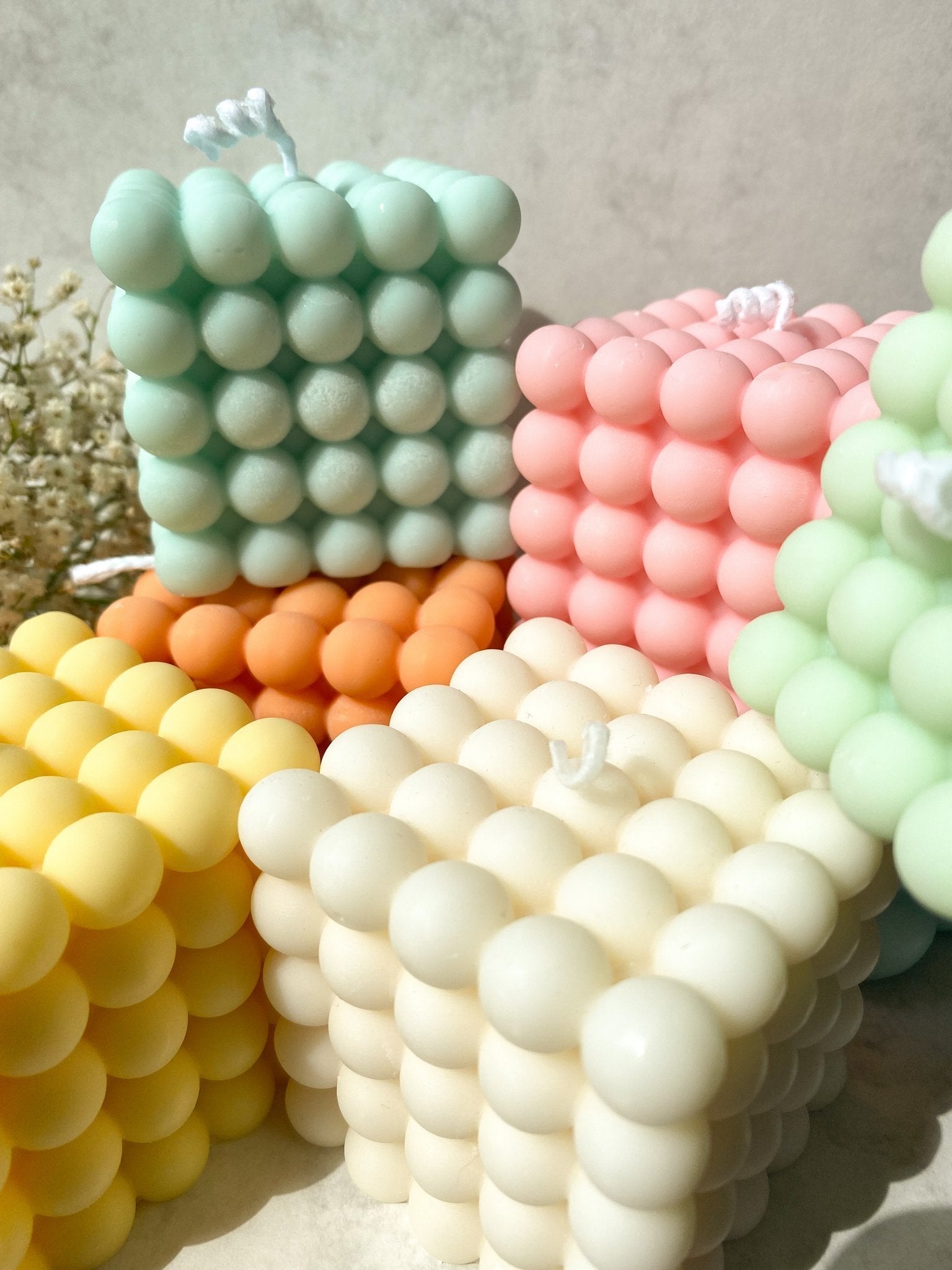 De luxe kubusvormige bubbel kaars bestaat 100% uit koolzaadwas en is handgemaakt in Duitsland. Doordat dit product met de hand gegoten is en met liefde bewerkt, is elke kaars uniek.