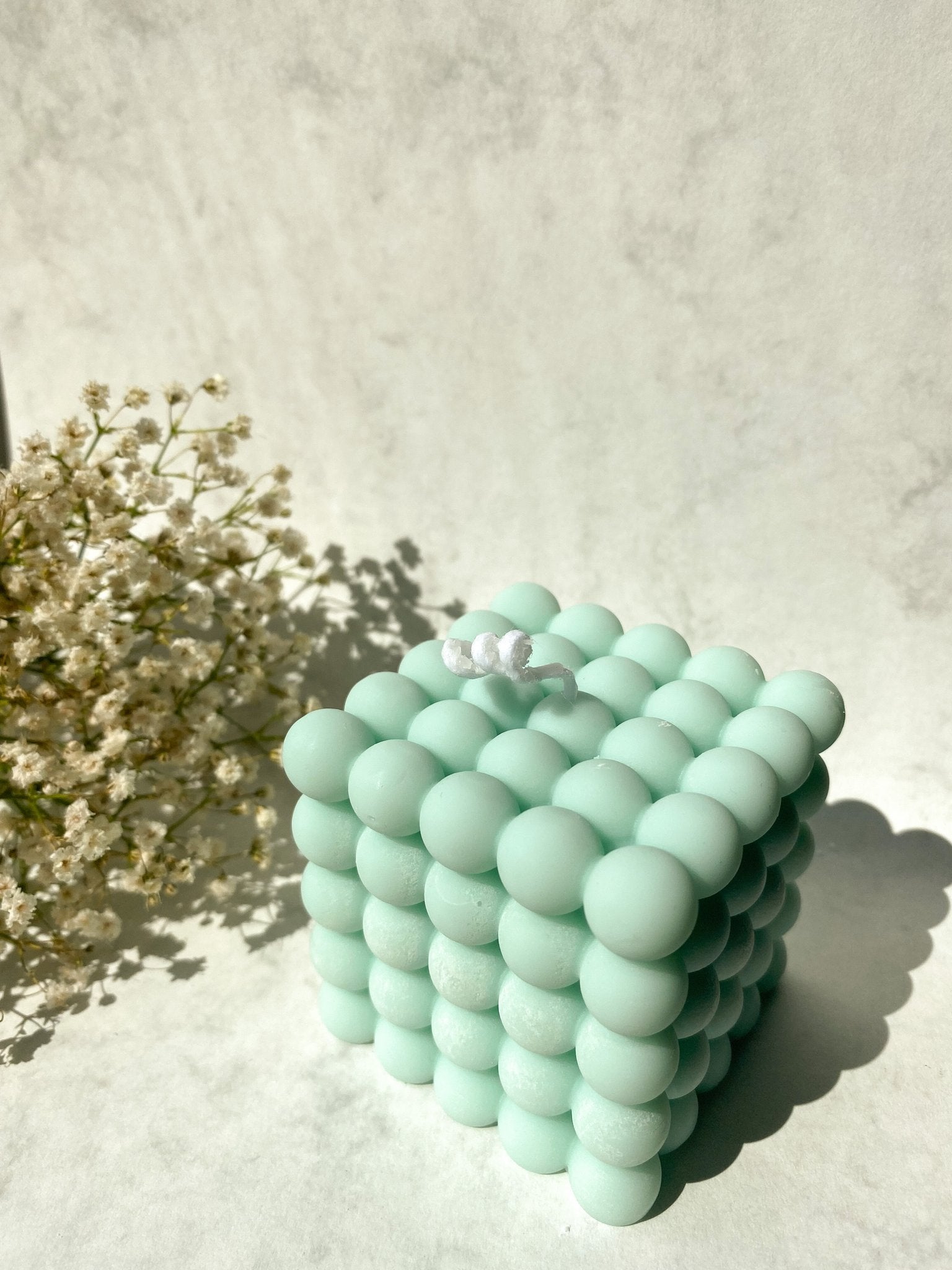 De luxe kubusvormige bubbel kaars bestaat 100% uit koolzaadwas en is handgemaakt in Duitsland. Doordat dit product met de hand gegoten is en met liefde bewerkt, is elke kaars uniek.