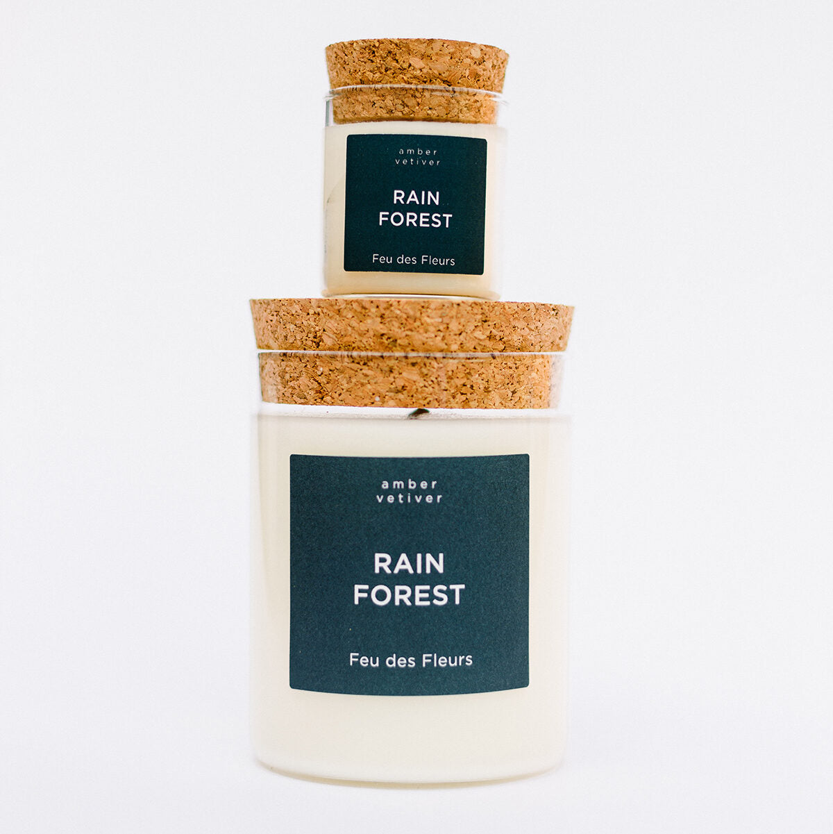 De Rain forest geurkaars is een kaars met tonen van musk, patchouli, vetiver, kruidige sinaasappel. Met een ondertoon van bloemige amber en dennen. Het moment dat de kaars begint te branden wordt de kamer gevuld met een herkenbare geur na een zomerse regenbui. Met de aardende geur van dennen en bossen. Een fijne en ontspannender geur.