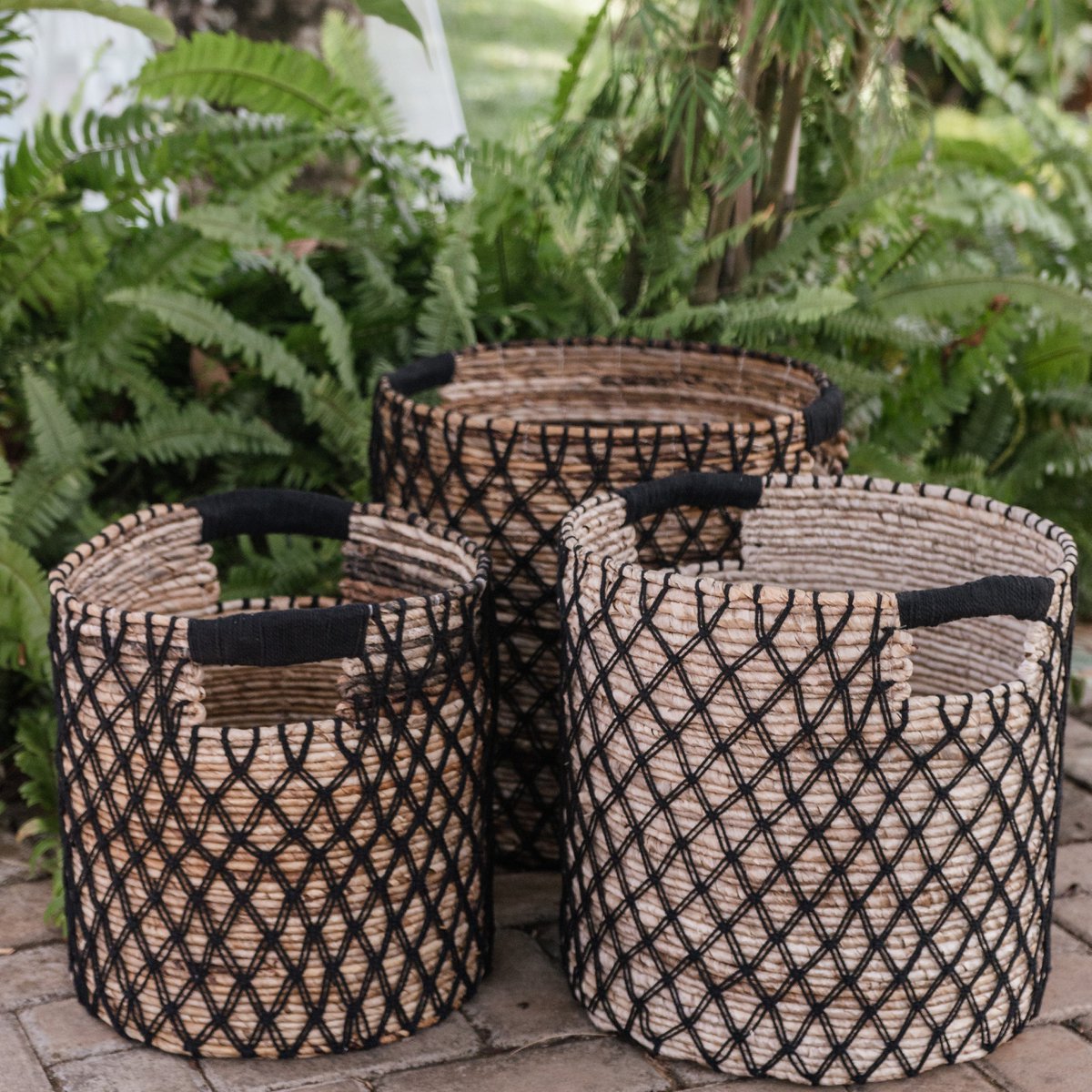 Opbergmand | wasmand | plantenmand gemaakt van bananenvezel in Zwart.