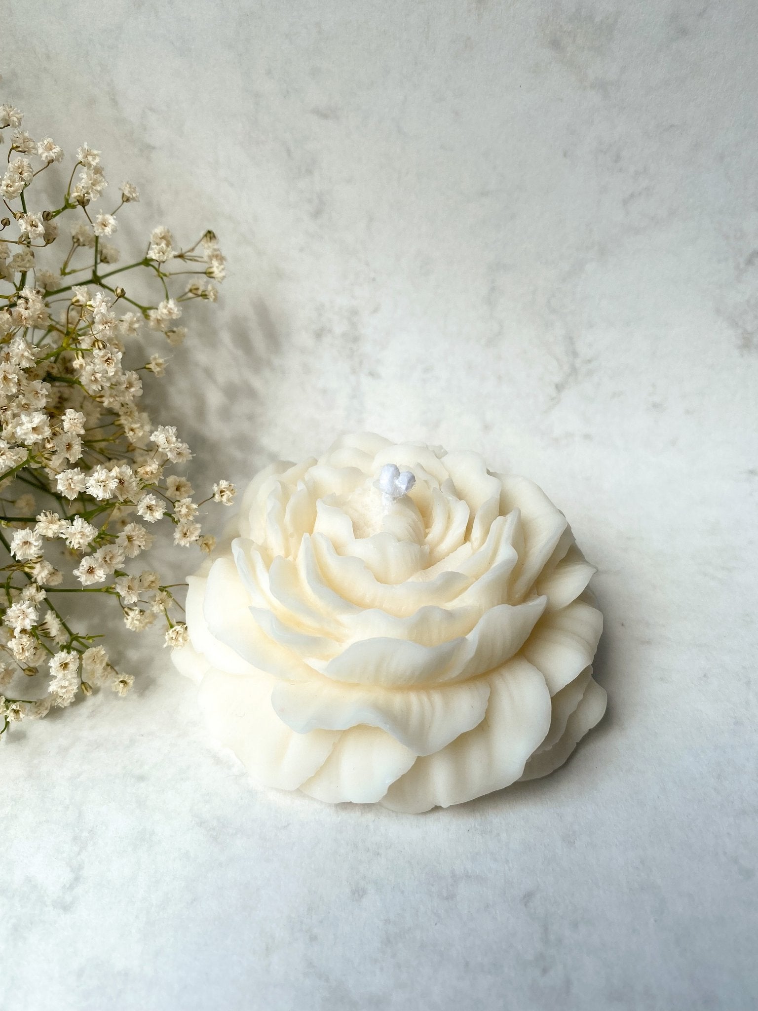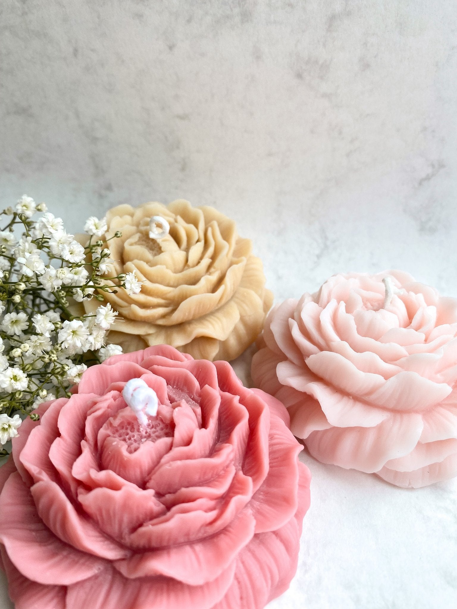 De elegante pioenroos kaars bestaat 100% uit koolzaadwas en is handgemaakt in Duitsland. Doordat dit product met de hand gegoten is en met liefde bewerkt, is elke kaars uniek.