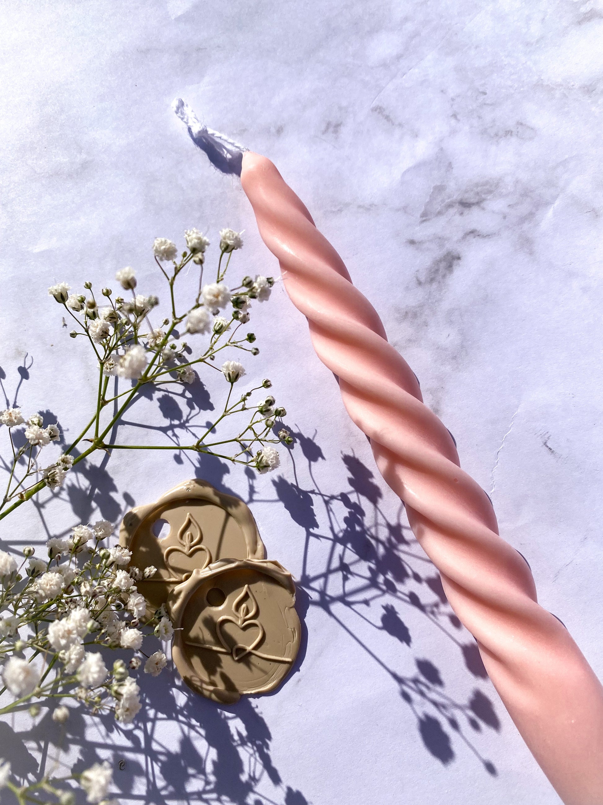 De getwiste kaars is gemaakt van pure koolzaadwas en waarvan de lont is gemaakt van katoen.