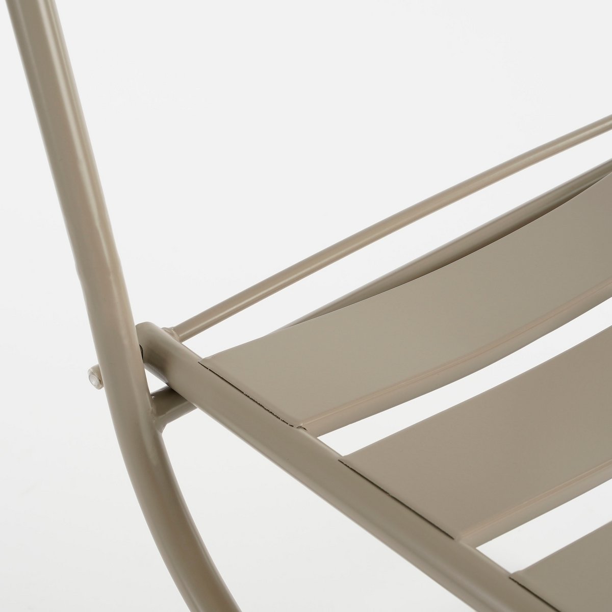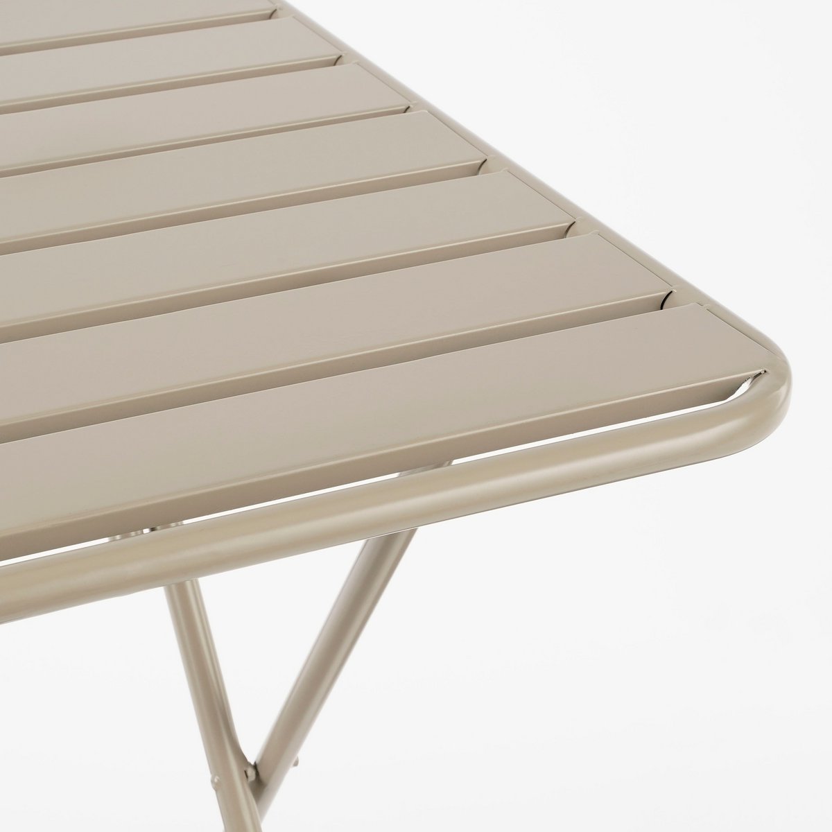 De set bestaat uit een ronde tafel en twee stoelen, die beide inklapbaar zijn voor eenvoudig opbergen. De stoelen hebben een afmeting van L41 x B49,5 x H84 cm, met een zithoogte van 46 cm, een zitbreedte van 41 cm en een zitdiepte van 32 cm. De tafel heeft een hoogte van 71 cm en een diameter van 61 cm. Perfect om te genieten van een ontspannen maaltijd of een verfrissend drankje in de buitenlucht!