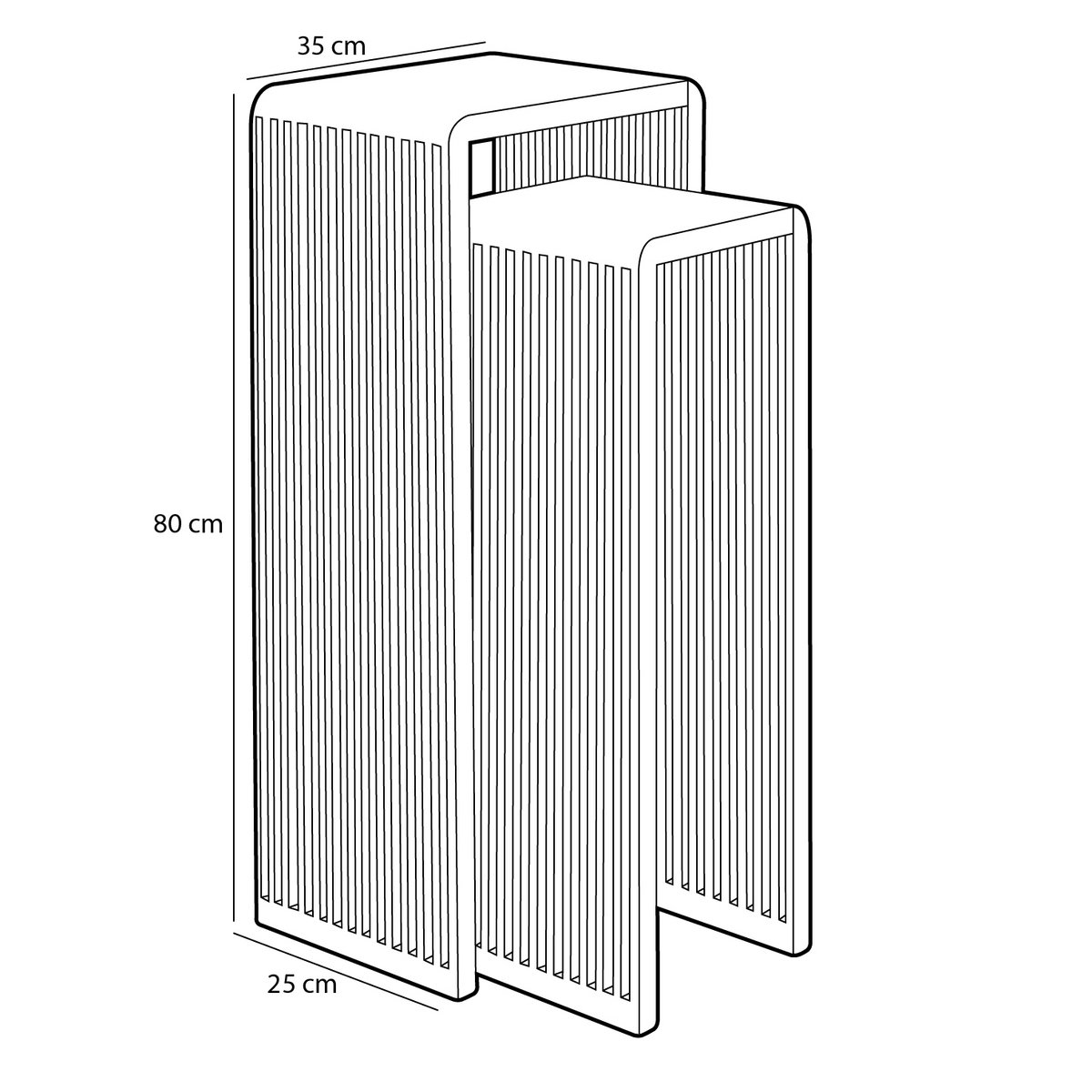 Met hun slanke ontwerp en twee verschillende hoogtes creëer je eenvoudig een speels en stijlvol hoekje voor je favoriete planten, een opvallende vaas of andere decoratieve items. Deze tafels bieden volop mogelijkheden!