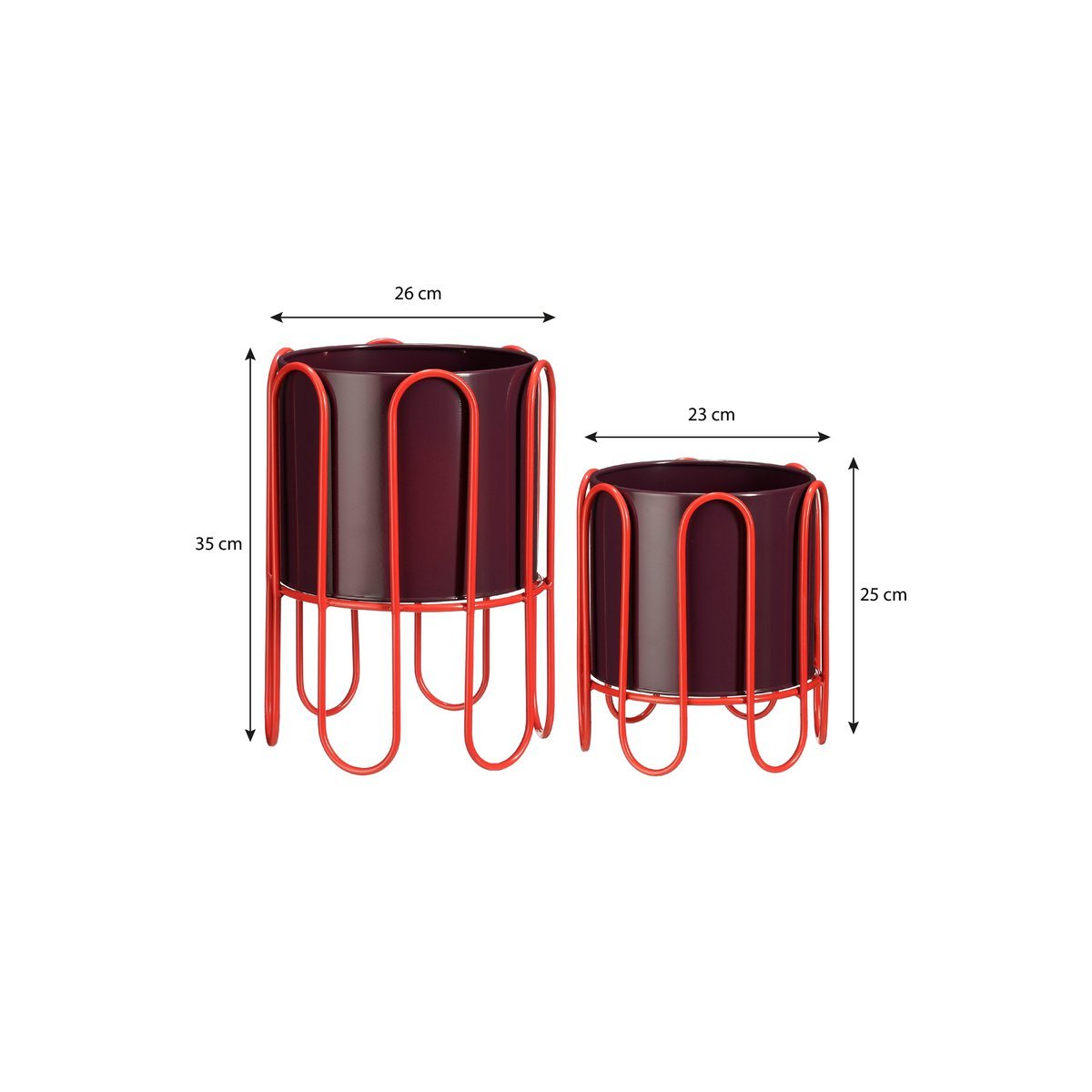 Zion Bloempot op Standaard Set van 2 - Gedurfde Kleurcombinatie in Rood